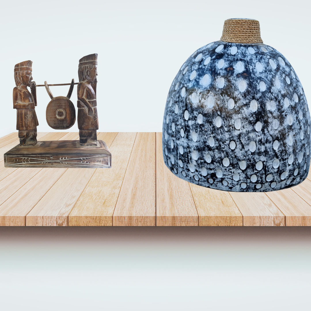 Add effortless charm to your home with this Decorative Tabletop Vase, available in black wash or white wash. These pieces are compact yet eye-catching. As a result, they are ideal for shelves, consoles, or side tables.